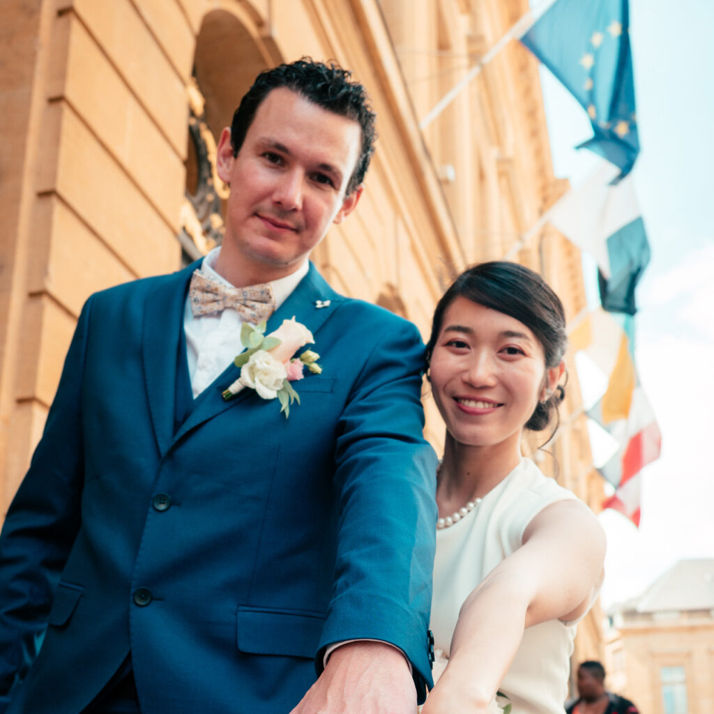 « Je lui demandé les photos de notre mariage grâce à son Instagram stylé 😄 Avant la cérémonie à l'hôtel de ville, nous avons également été pris en photo à Metz pendant environ deux heures, il était efficace et nous avons pu prendre des photos dans beaucoup plus de lieux d'intérêt que nous l'avions imaginé. Nous sommes un couple franco-japonais et nous avons pu beaucoup parler et nous détendre parce que il était déjà allés au Japon. Il aime voyager dans d'autres pays aussi donc je suis sûr que il a beaucoup de compétences en communication. »